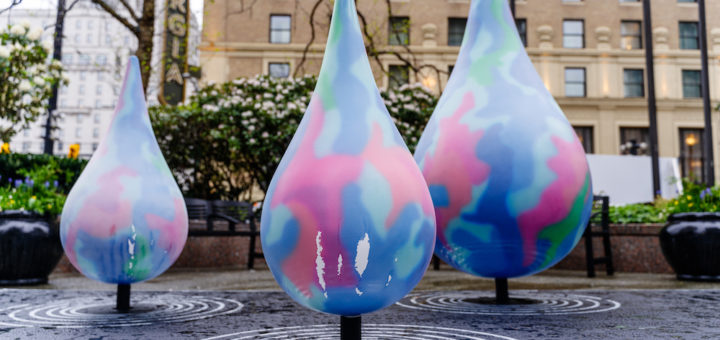 Canada Goose celebrates spring showers with a rain-activated art installation located outside CF Pacific Centre