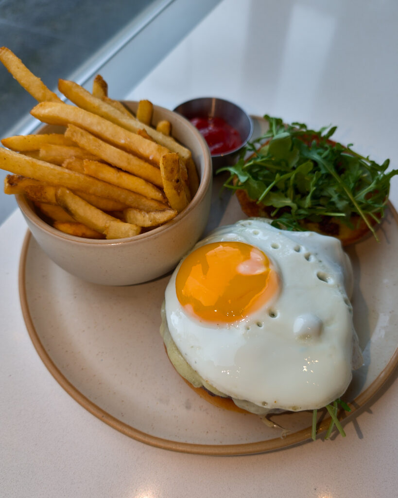 The Hiro Wagyu Burger is a standout item here. It is definitely indulgent. They top the patty with smoked bacon jam and melted gruyere cheese. House-made grainy mustard adds some heat, while fresh arugula provides a peppery bite. To top it all off, they add a fried egg. It is a big flavour combination that really works. You can choose fries, a kale caesar salad, or tomato soup on the side.